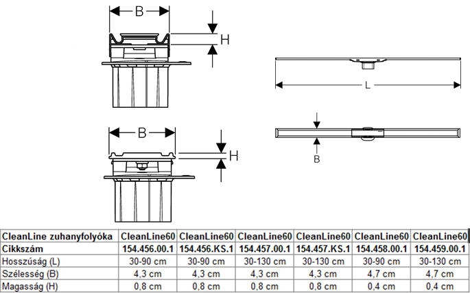 Geberit Cleanline60 zuhanyfolyóka 30-90 cm hosszú, padló síkba épített, rozsdamentes acél, vékony burkolathoz 154.458.00.1