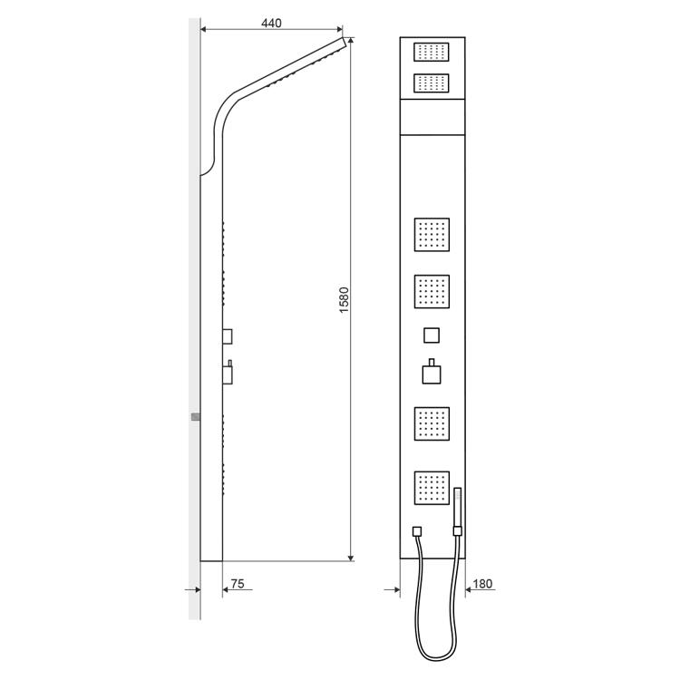 Sapho MOLA zuhanypanel 210x1300mm termosztatikus csapteleppel, egyenes falra (80365)