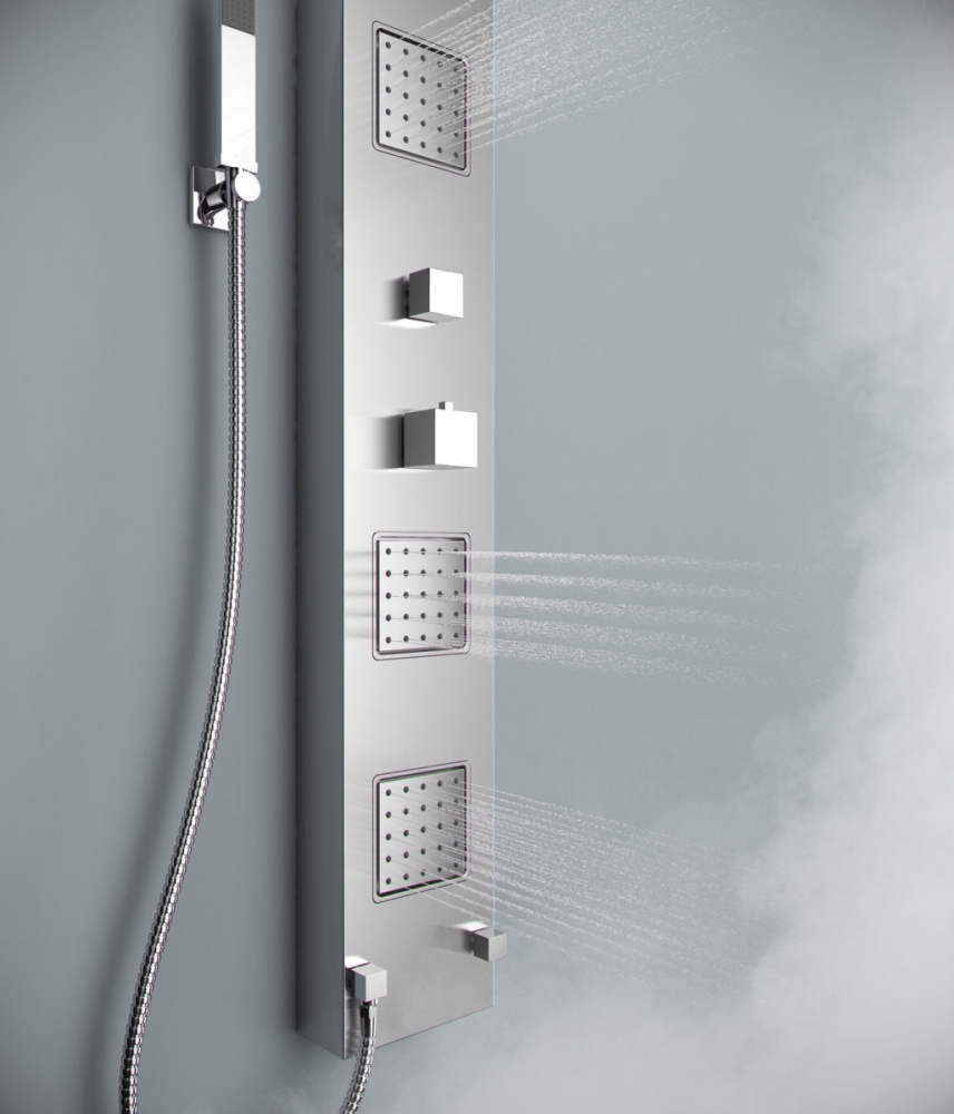 Roca Evolution termosztátos hidromasszázs zuhanypanel, matt rozsdamentes acél A5A9B8BC00