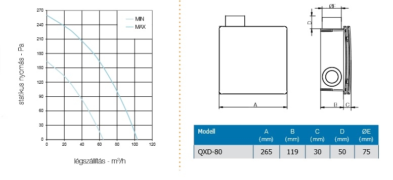 Légszállítási adatok:(*max. légszállítás szabad kivezetés esetén / EN61591 szabvány szerint) 103/64 m3