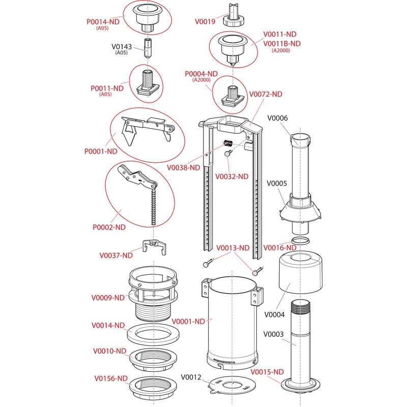 ALCA (Alcaplast) A02 Öblítőszelep alacsonyan elhelyezett tartályhoz