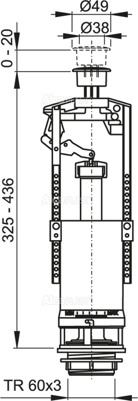 ALCA (Alcaplast) A03 Öblítőszelep magasan elhelyezett tartályhoz