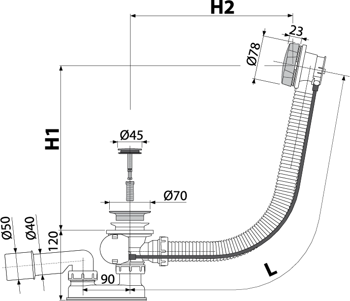 ALCA (Alcaplast) A55BLACK 100 automata kádszifon, fekete (hossz 1000mm)
