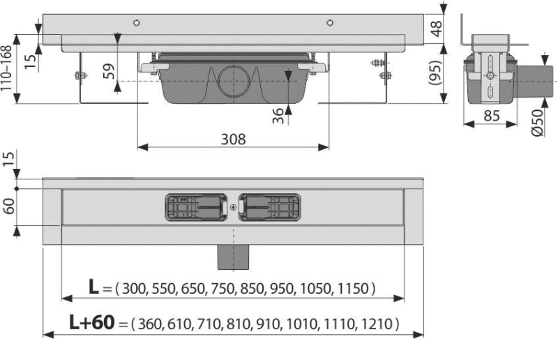 ALCA (Alcaplast) APZ6-550 Professional Zuhanyfolyóka peremmel tömör rácsokhoz