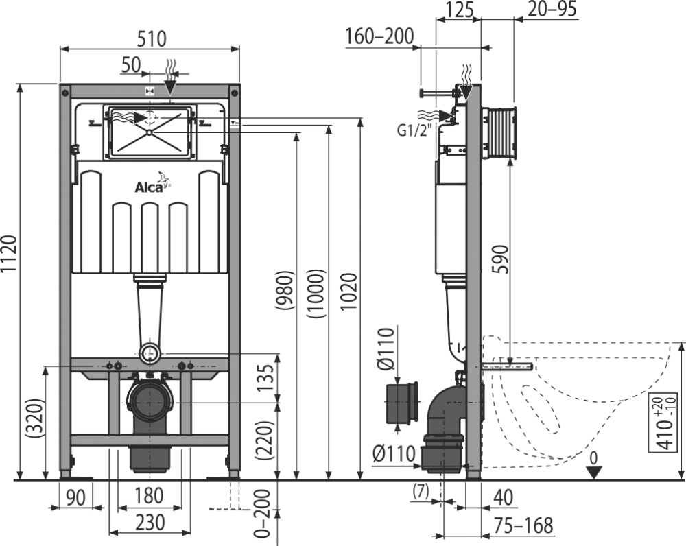 ALCA (Alcaplast) AM120/1120 Falsík alatti szerelési rendszer toaletthez bidé funkcióval