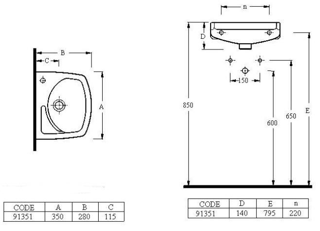 Alföldi Bázis 40x25 fali kézmosó, bal oldali csaplyukkal 4123 4L 01 (41234L01)