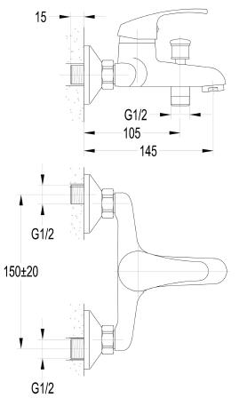 Ferro Smile fali kádtöltő-és zuhanycsaptelep, króm, BSM11
