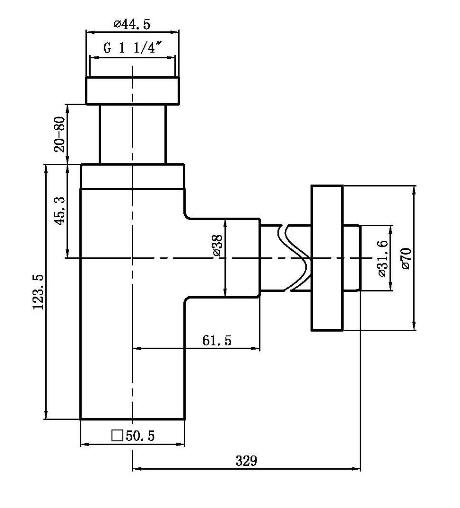 Aqualine design mosdó szifon (CV1004) szorító anyával 1"1/4 - 32 mm, réz
