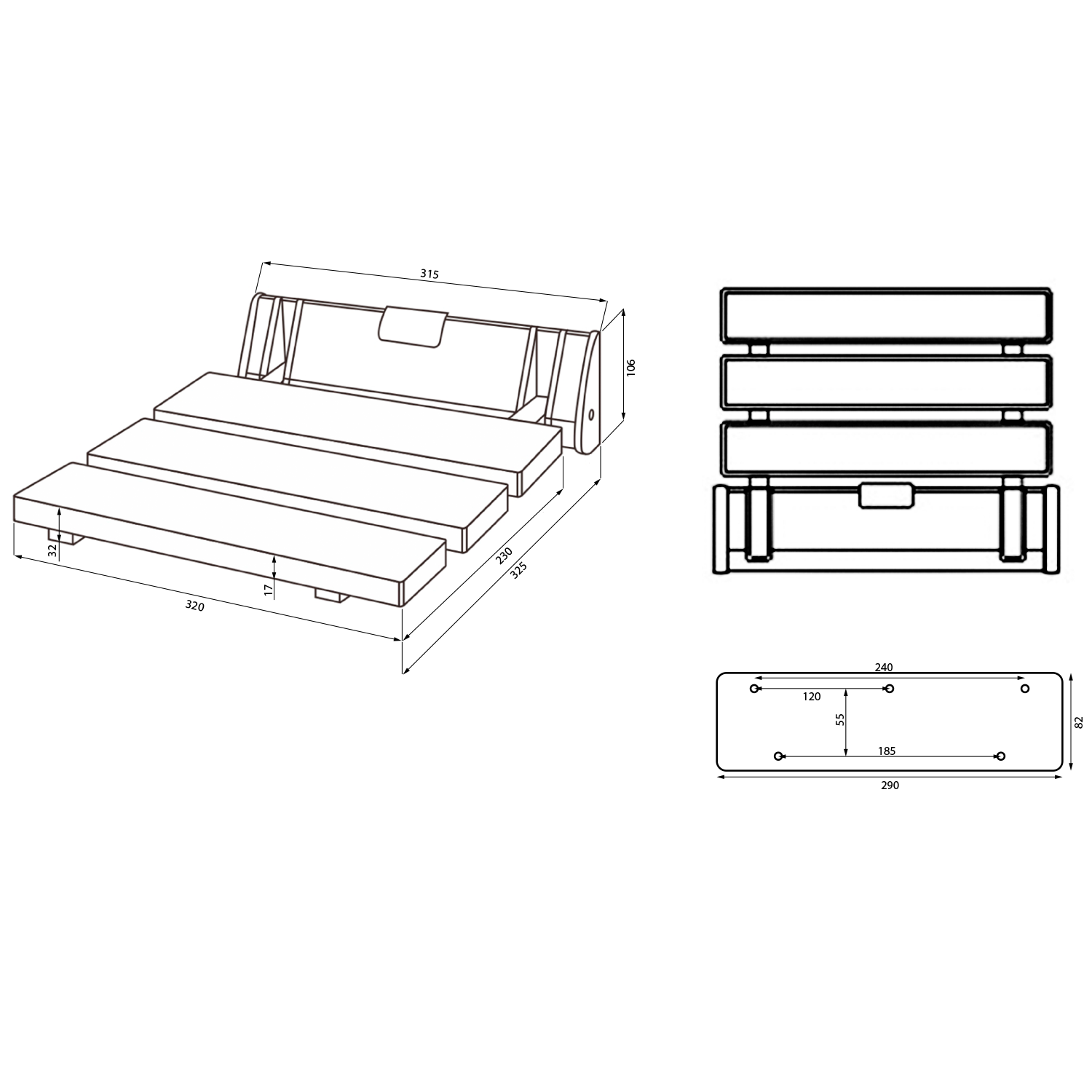 Sapho AQUALINE felhajtható zuhanyülőke, szürke AE236GRAqualine