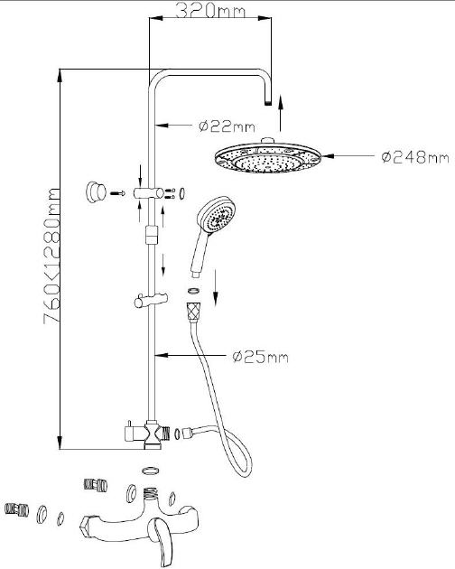 Zuhanyoszlop rúd átmérője Átmérő 25 mm