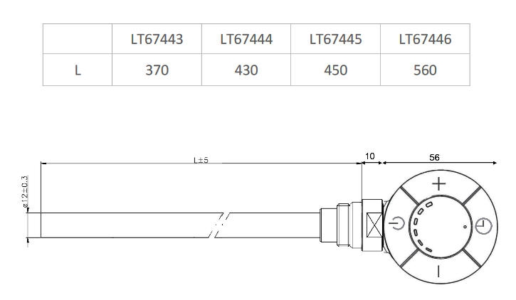 Aqualine termosztátos fűtőpatron, 300 W, króm (LT67443)Aqualine