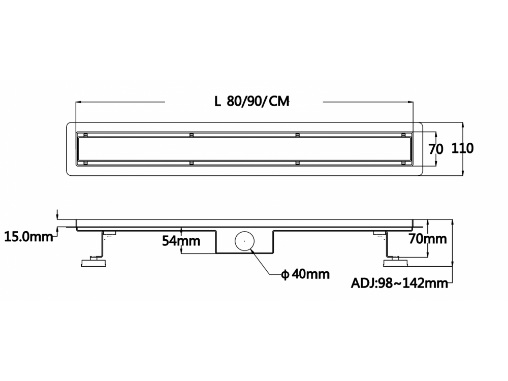 Roltechnik rozsdamentes zuhanyfolyóka, burkolható 900 mm, RRF7-900