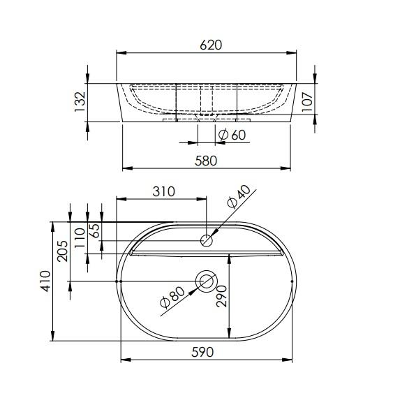 Sapho OFELIE pultra ültethető mosdó, 51,5x39 cm AR433