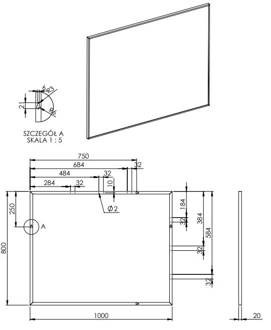 AQUALINE LED tükör világítással, billenő kapcsolóval, 60x80cm ATH6