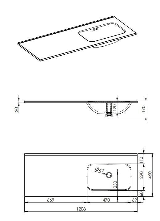 AREZZO design SKAPPA 120 cm jobbos mosdó csaplyuk nélkül, fehér AR-146039Arezzo Design