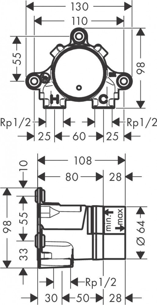 Hansgrohe alaptest egykaros, falsík alatti mosdócsaptelephez 13622 180 (13622180)