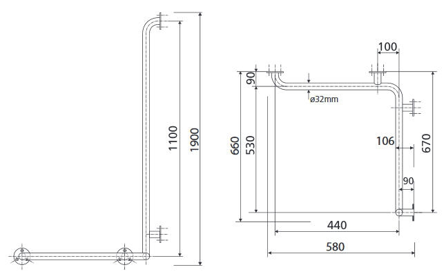 Bemeta HELP 68x63 cm-es rozsdamentes acél kapaszkodó, polírozott, balos 301112071