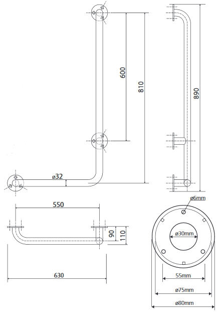 Bemeta HELP 80 cm-es felnyitható rozsdamentes acél kapaszkodó, matt 301102082 (XH560)