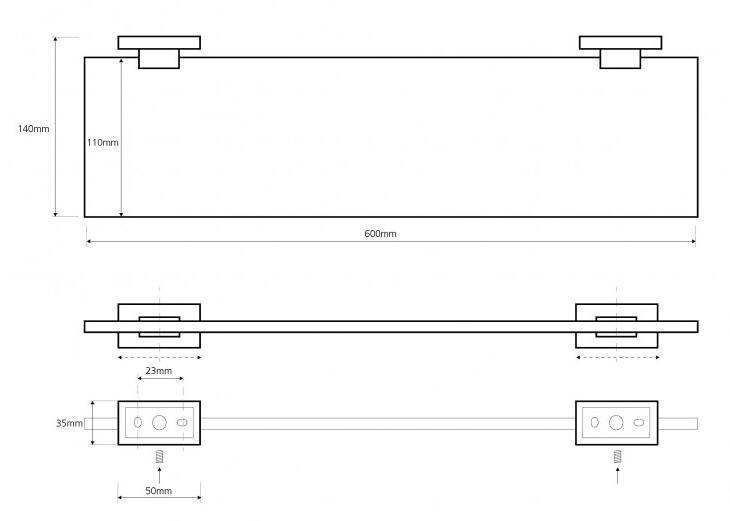 Sapho BEMETA TASI Üvegpolc, 600x50x132mm, króm 154102242