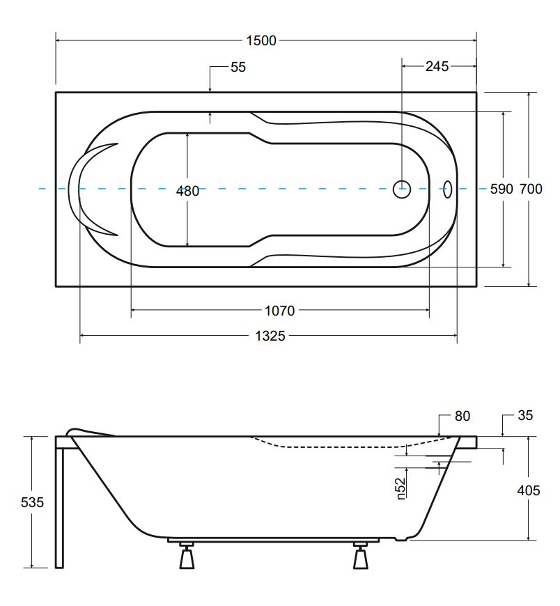 Roltechnik EasyBath Slim 150x70 cm egyenes kád RT2-15070