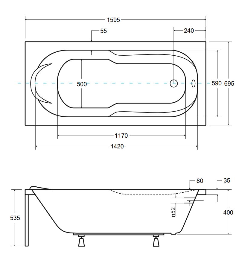 Roltechnik EasyBath Slim 150x70 cm egyenes kád RT2-15070