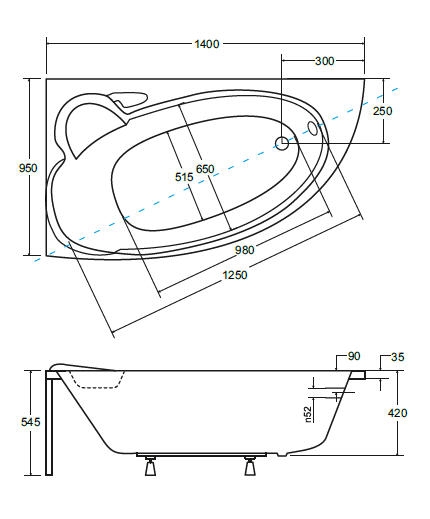 Besco Finezja Nova 140x95 cm aszimmetrikus kád, jobbos