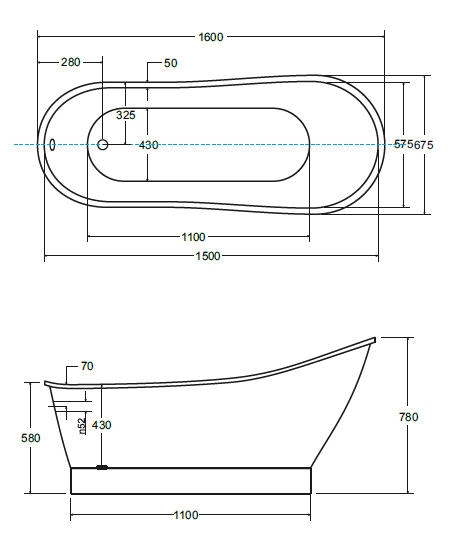 AQUALINE TAJO szabadonálló kád, 170x80cm, akril E1980
