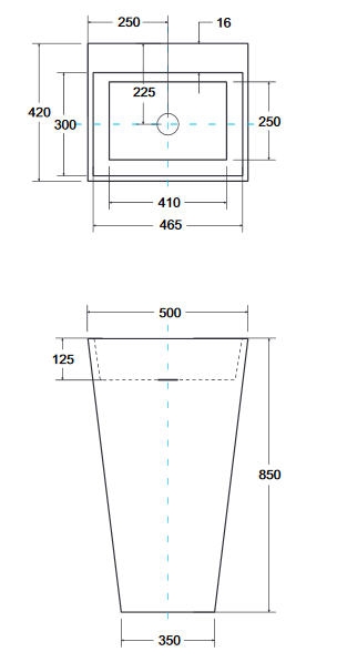 Sapho ALTONA 56,5x85 cm térben álló öntöttmárvány mosdó, matt fehér TR565
