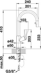 Nagyívű, magas kifolyó megkönnyíti a fazekak és vázák megtöltését