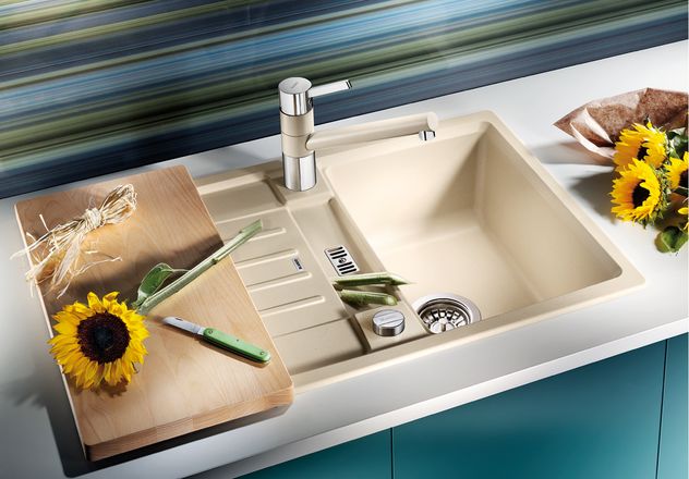 BLANCO LEXA 40S Silgranit mosogató dugókiemelővel A sand kifutó!!! Csak a készlet erejéig rendelhető!!! Igen hangsúlyos, finom formák Modern mosogató központ bármely konyhai környezetbe ajánlott A külső kontúrok és rádiuszok harmonikus összhangja Maximálisan nagyra tervezett, szögletes medence 40 cm-es alsószekrényekbe Elegáns csepegtető felület szép formájú kiegészítő kiöntő medencével Opcionális tartozék: bükkfa vagy fehér műanyag vágódeszka Beépíthető vagy aláépíthető forgatható kivitelben Alaptartozékok 3 ½"- os szűrőkosaras lefolyó, helytakarékos csővel, lefolyó távműködtetővel Anyaga: Silgranit Alsószekrény mérete: 40 cm Elrendezés: 1 medence + csepptálca Beépítés: felülről Felületvédelem: PuraDur II Silgranit PuraDur II Az alapanyag kb. 80% gránit őrleményből áll, ami a mosogatót felülmúlhatatlanul keménnyé és karcállóvá teszi. Az akrylgyanta összetartja az anyagot, a mosogatónak zárt, pólusmentes felületet ad, az ápolást különösen megkönnyíti. A BLANCO 20 éves gyártási tapasztalatát felhasználva 2009-ben fejlesztette ki a speciális BLANCO PuraDur II anyagösszetételt, mellyel a gránitmosogató területén világviszonylatban piacvezetővé vált. A Silgranit PuraDur II tulajdonságai: - 10 színből választhat, a ragyogó fehértől a csillogó fényű alumetálig - felülmúlhatatlan karcállóság, kővel vetekedő keménység - vízlepergető hatás - hőállóság 280 C fokig - élelmiszerálló és higiénikus - folt és saválló - fényálló - könnyen tisztítható