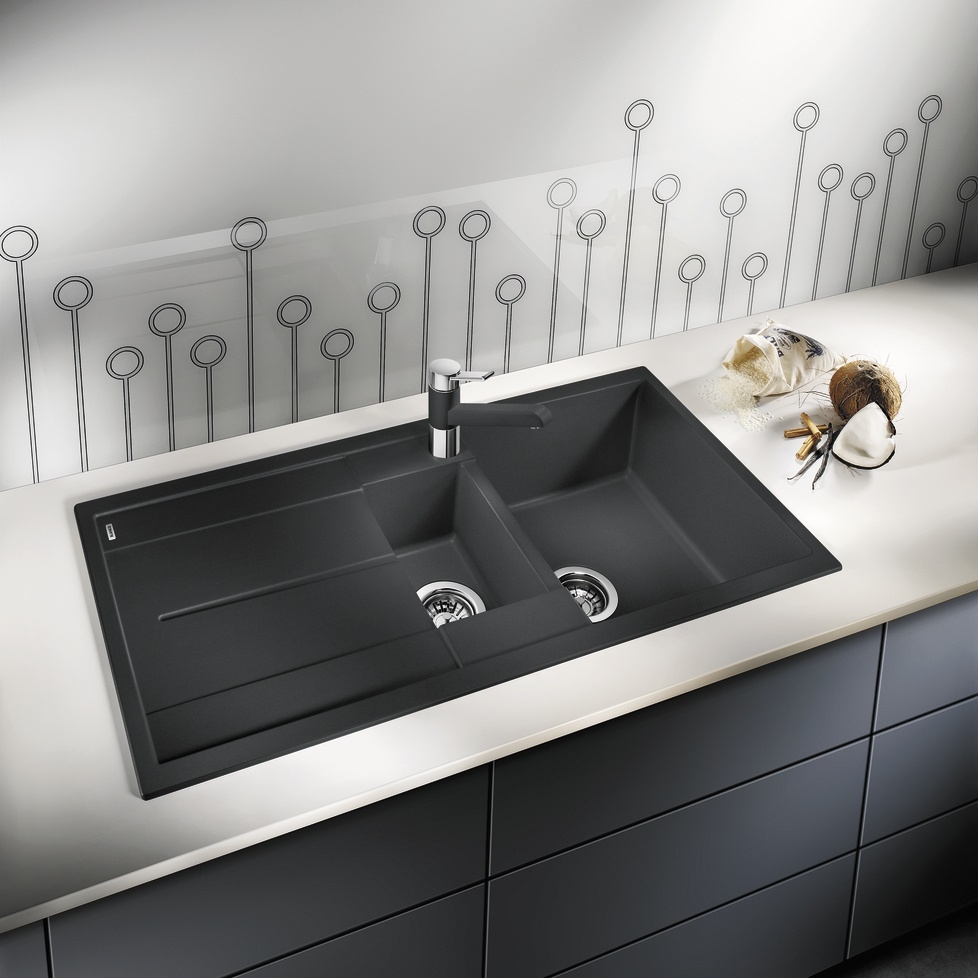 BLANCO METRA 6S Silgranit mosogatótál dugókiemelő nélkül SILGRANIT® PuraDur® II A sand kifutó!!! Csak a készlet erejéig rendelhető!!! Világos vonalvezetés és kényelem Fiatalos, egyenesvonalú kialakítás Tetszetős darab a kelendő választékban A különösen térséges főmedencében felülmúlhatatlanul sok hely van a mosogatáshoz A kiegészítő medence a rozsdamentes gyümölcsmosó tállal nagyon kényelmessé teszi a munkát A célszerű csepegtetőrész munkafelületként is használható Esztétikusan lapos kialakítású perem Az összes SILGRANIT® színben kapható A mosogató forgatható, és munkalapszint alá is beépíthető Medencemélység: 190/130 mm Alaptartozékok: lefolyógarnitúra helytakarékos csővel, két 31/2"os szűrőkosaras lefolyó Anyaga: Silgranit Alsószekrény mérete: 60 Elrendezés: 1 medence + gyümölcsmosó + csepptálca Beépítés: hagyományos (munkalap kivágásba felülről) Felületvédelem: PuraDur II Silgranit PuraDur II Az alapanyag kb. 80% gránit őrleményből áll, ami a mosogatót felülmúlhatatlanul keménnyé és karcállóvá teszi. Az akrylgyanta összetartja az anyagot, a mosogatónak zárt, pólusmentes felületet ad, az ápolást különösen megkönnyíti. A BLANCO 20 éves gyártási tapasztalatát felhasználva 2009-ben fejlesztette ki a speciális BLANCO PuraDur II anyagösszetételt, mellyel a gránitmosogató területén világviszonylatban piacvezetővé vált. A Silgranit PuraDur II tulajdonságai: - 10 színből választhat, a ragyogó fehértől a csillogó fényű alumetálig - felülmúlhatatlan karcállóság, kővel vetekedő keménység - vízlepergető hatás - hőállóság 280 C fokig - élelmiszerálló és higiénikus - folt és saválló - fényálló - könnyen tisztítható