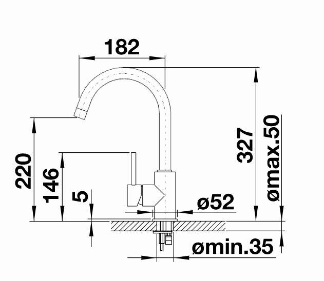 enyhén hajlított kifolyócsővel 360°-ban elforgatható Magas kifolyó az edények és vázák könnyű megtöltéséhez
