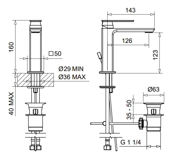 Bugnatese MILLENOVECINQUANTA mosdócsaptelep leeresztővel, grafit fekete 4534GF