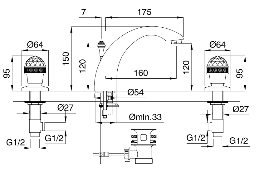 Bugnatese Axo Fenice 612FCR Álló 3 üléses mosdó csaptelep leeresztővel CR / KRÓMBugnatese