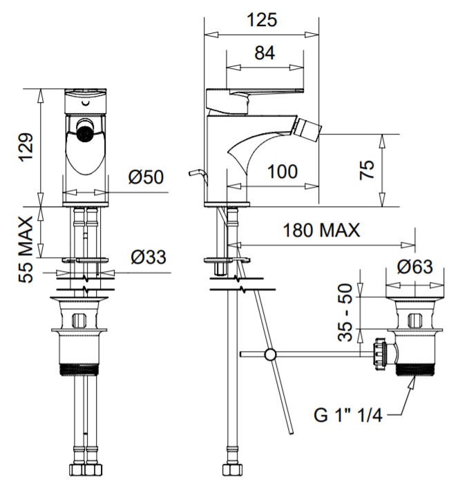 Aqualine FACTOR bidet csaptelep leeresztő nélkül, króm (FC203)
