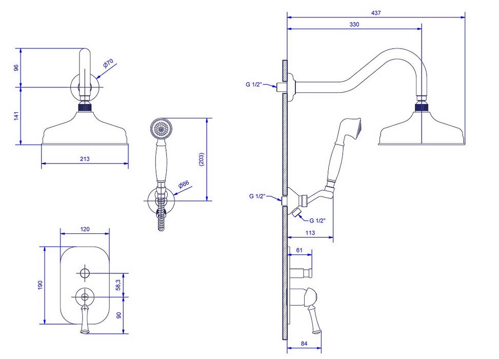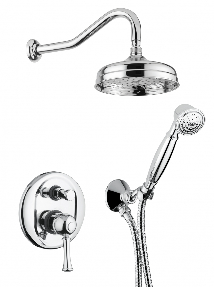 Bugnatese KOBUK Fal alatti zuhanycsaptelep kézizuhannyal és esőztetőfejjel, szálcsiszolt nikkel szín 2201HNS