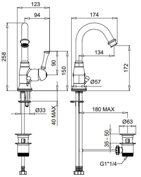 Bugnatese Denver Magas mosdócsaptelep leeresztővel szálcsiszolt bronz szín 6419BRBugnatese