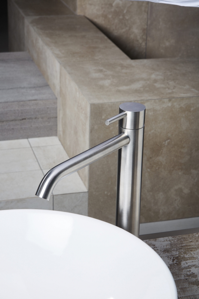Bugnatese KIRVY STEEL magasított mosdócsaptelep leeresztő nélkül, szálcsiszolt acél 9017SACBugnatese