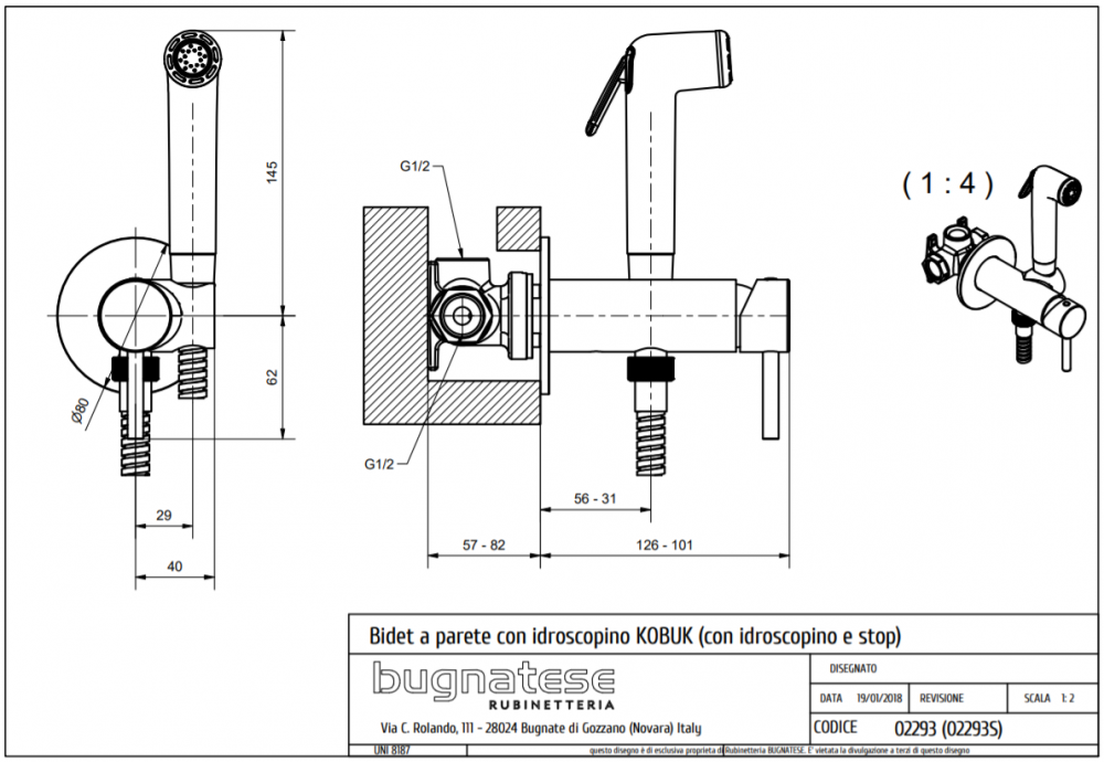 Bugnatese KOBUK Fal alatti bidet csaptelep, matt fekete 2293NEBugnatese