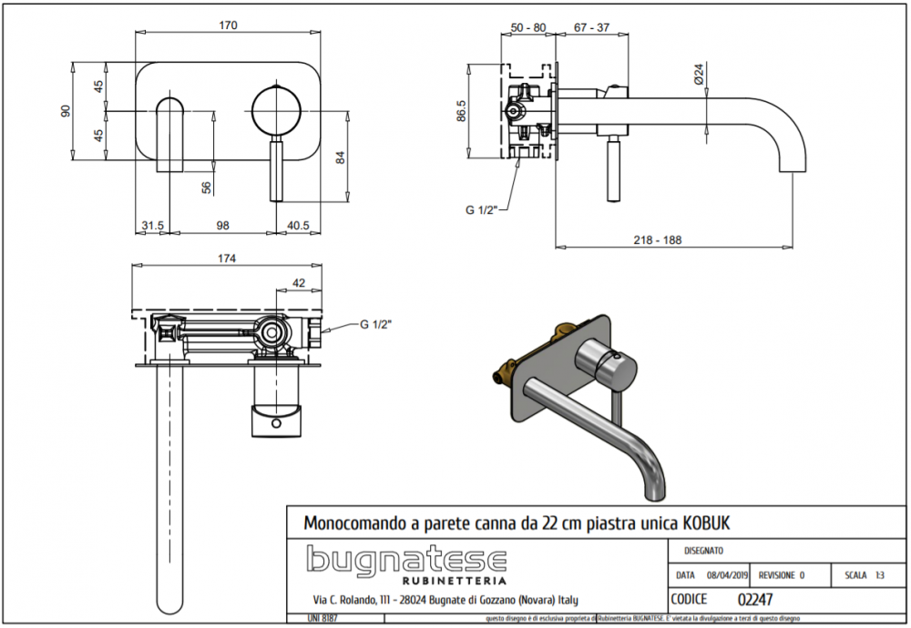 Bugnatese Kobuk Fal alatti mosdócsaptelep 22 cm kifolyóval, matt bronz szín 2247BOBugnatese