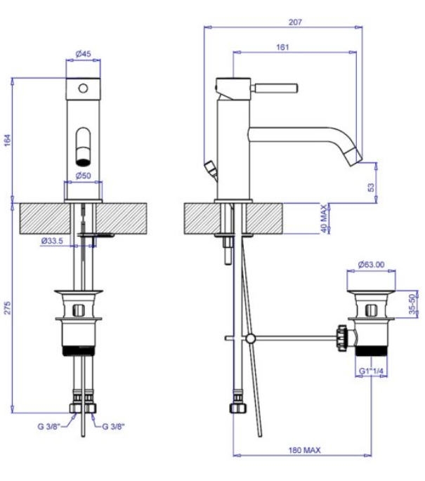 Bugnatese Kobuk Fix Mosdócsaptelep 15,5 cm kifolyóval, leeresztővel, matt bronz szín 2314BOBugnatese