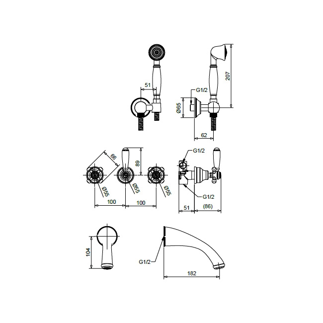 Bugnatese Lady 918RA Fal alatti váltós csap kifolyóval és zuhanyszettel RA / RAMEBugnatese