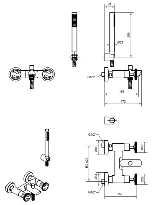 Bugnatese Simple fali kádcsaptelep zuhanyszettel, grafit fekete színben 6602GF