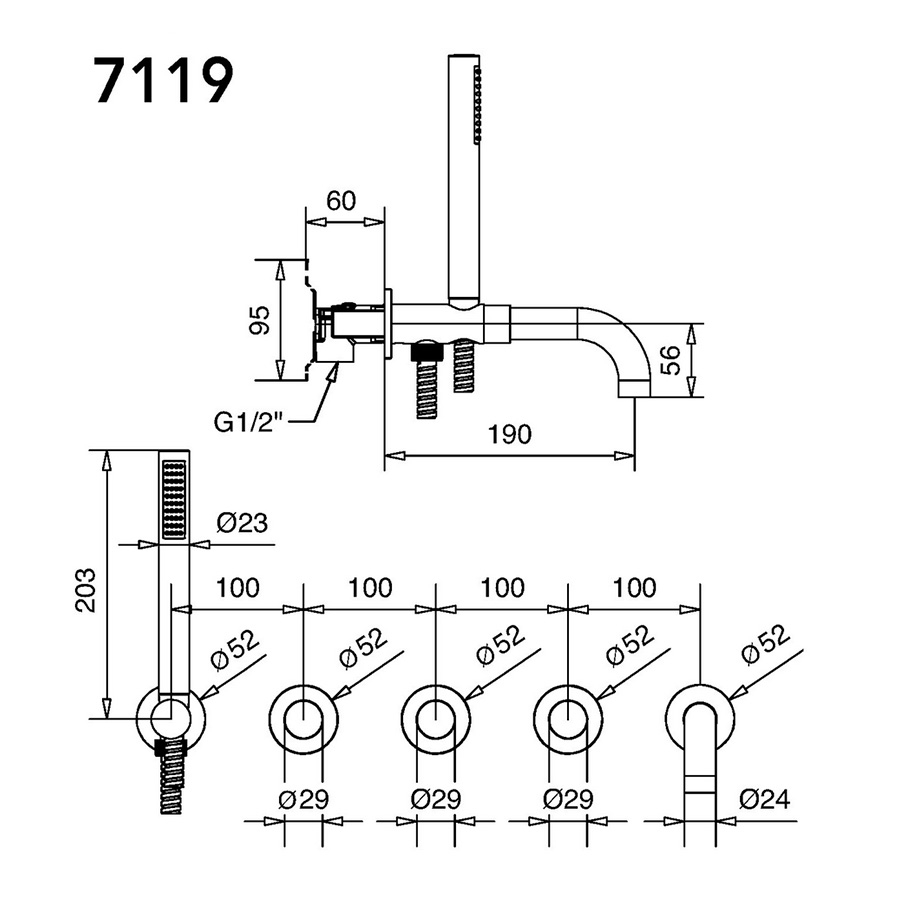 Bugnatese MOON Fal alatti rendszer kádbeömlővel és zuhanyszettel króm 7119CR