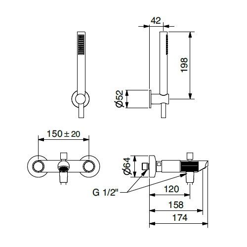 Bugnatese Tetris fali kádcsaptelep zuhanyszettel, matt fehér 9102BI