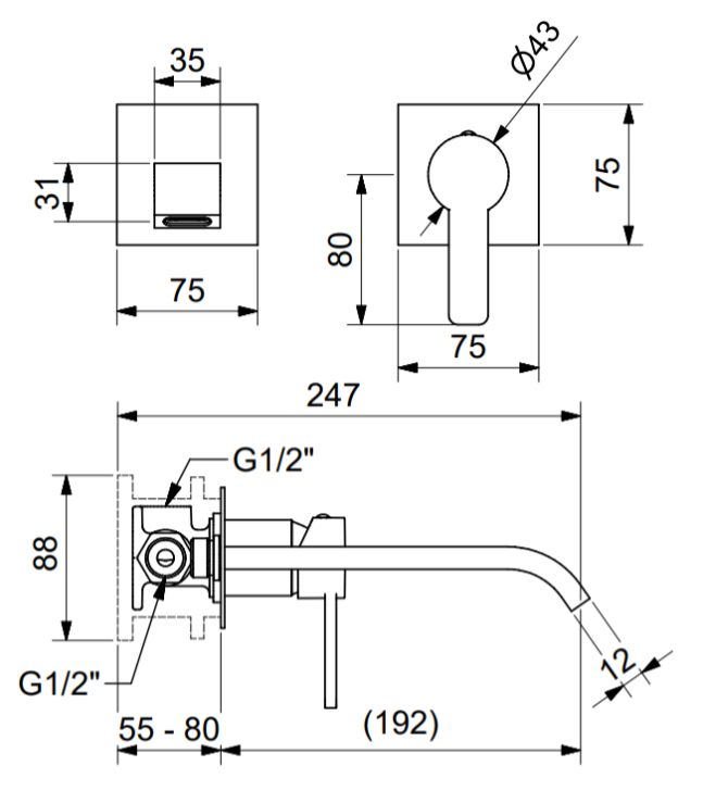 Bugnatese Kobuk Fal alatti mosdócsaptelep 19 cm kifolyóval, króm 2245CR
