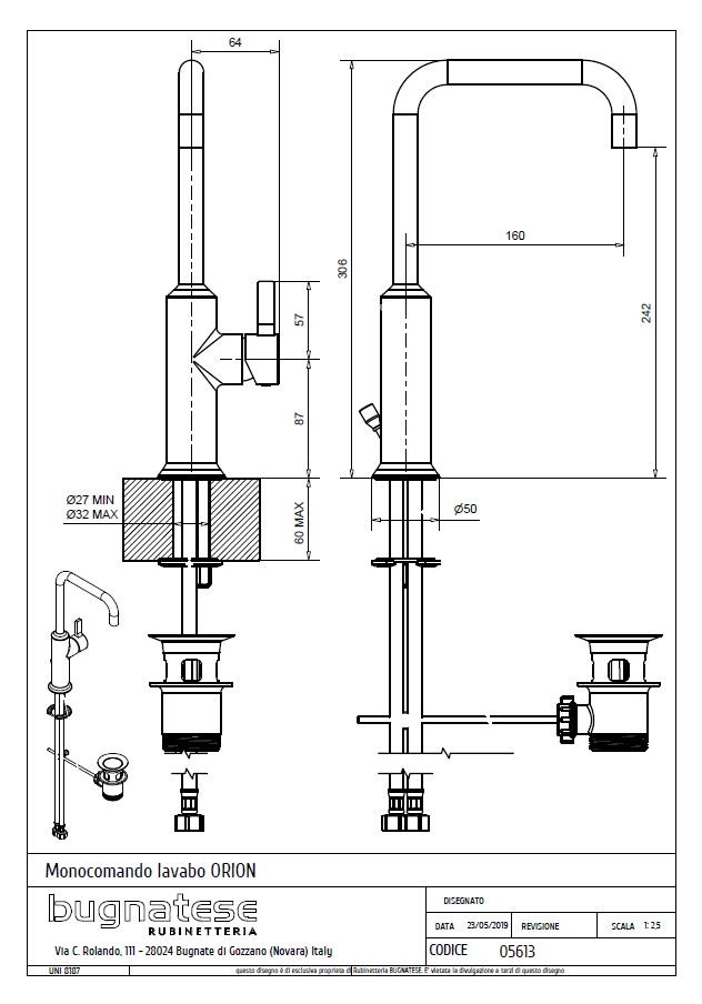 Bugnatese ORION mosdócsaptelep leeresztővel, króm 5613CR