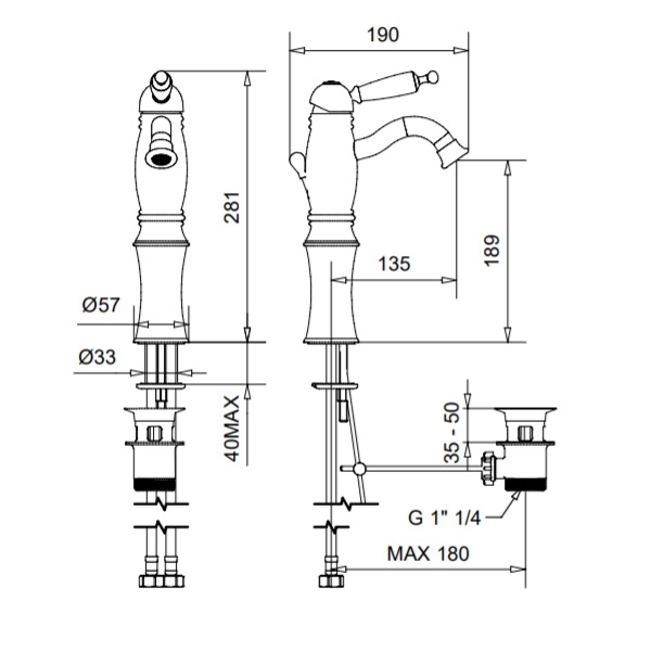 Bugnatese Oxford 6327NS Magas mosdócsaptelep leeresztővel NS / NIKKELBugnatese
