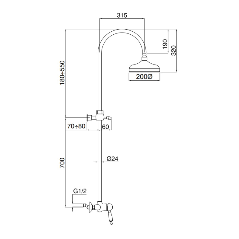 Bugnatese Oxford 6349CRDO Esőztető rendszer fejzuhannyal CRDO / KRÓMARANYBugnatese