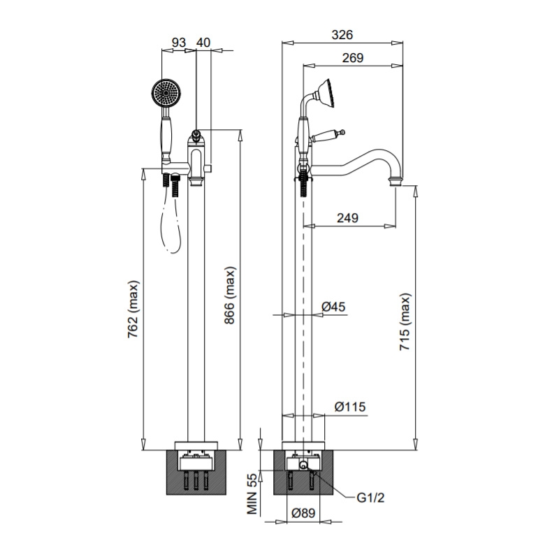 Bugnatese Oxford 6360BR Szabadon álló kádcsaptelep kézizuhannyal BR / BRONZBugnatese